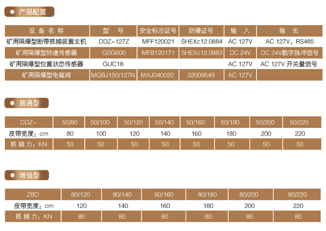 產(chǎn)品概況: DDZ-80型帶式輸送機用斷帶保護裝置,是根據《煤礦安全規程》第三百七十五條的規定:鋼絲繩芯帶式輸送機應設斷帶保護裝置要求,而專(zhuān)門(mén)設計的機電一體化智能型的專(zhuān)用產(chǎn)品。主要用于煤礦井下皮帶機的皮帶在斷帶、倒帶情況下的保護和監測。 工作原理: 安裝于皮帶下方的速度傳感器實(shí)時(shí)檢測皮帶的運行狀況,當運行中的皮帶速度異常(斷帶或倒帶)超出設定范圍時(shí),該檢測信號(數字脈沖信號)傳輸到控制主機(PLC),控制主機隨機進(jìn)行數據處理并發(fā)出相應的控制指令,控制斷帶抓捕器機構動(dòng)作,迅速抓捕住斷帶下滑或倒帶運行中的皮帶,從而將事故控制在初始階段,防止事故的進(jìn)一步擴大。同時(shí)切斷皮帶輸送機控制回路電源,防止皮帶與驅動(dòng)滾筒產(chǎn)生摩擦,并控制聲光報警器發(fā)出信號報警。 產(chǎn)品型號說(shuō)明: